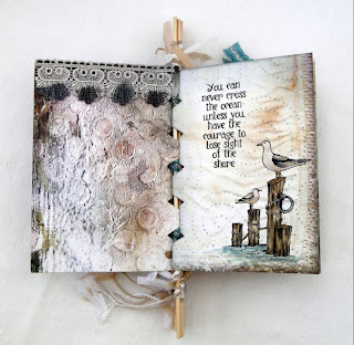 And now I'll show you the fully stamped and assembled book waiting to be filled with seaside holiday photographs and little notes, etc., of how much holiday fun was had or perhaps hand written pieces of more poetry about the sea.